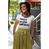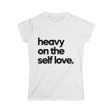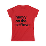 The woman's softstyle tee is a more feminine take on the classic tee. The sleeves are shortened to reveal some shoulder. The fabric is a blend of cotton and polyester. There are no side seams because the garment is knit in one piece. The shoulders are taped with twill to prolong durability. The collar seam is reinforced with ribbed knitting.